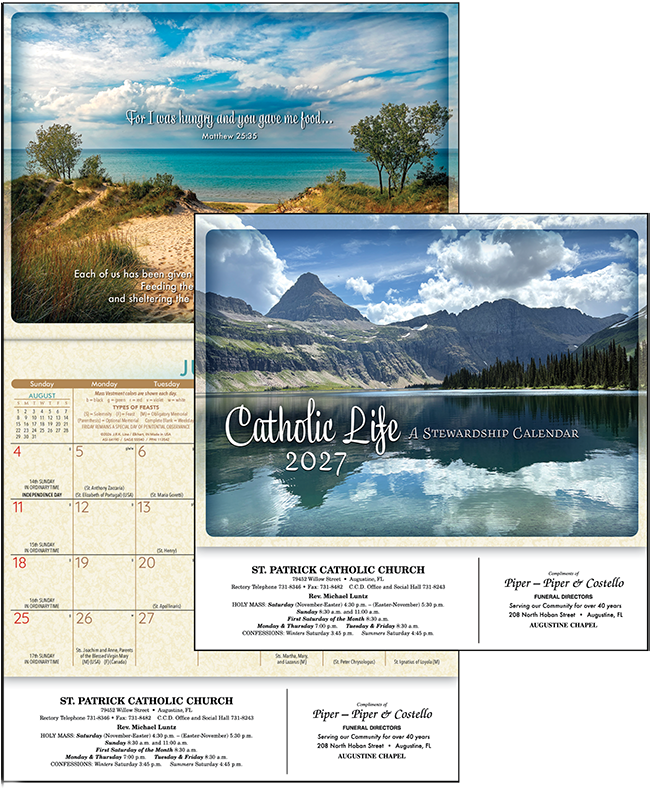 The Catholic Life calendar reflects the beauty of the world with unique, scenic photographs. Each monthly picture features scripture copy for daily encouragement.