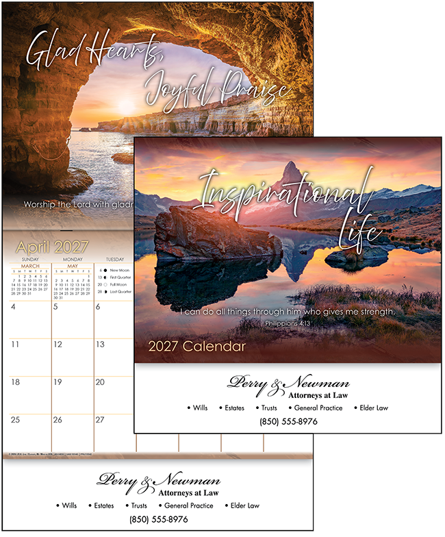 The Inspirational Life calendar features beautiful scenic pictures alongside scripture readings. This outstanding appointment calendar is a non-denominational calendar that appeals to a wide market.